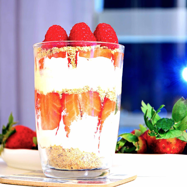 A no-bake strawberry, raspberry, fresh cream and honey based layered dessert for Valentine's Day or for any other love filled day to woo the lovers.